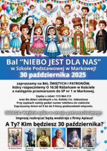 Dzieci w strojach przychodzą na modlitwę różańcową o 16.30. Po zakończeniu będzie miał miejsce przemarsz do Szkoły Podstawowej na dalszą część Balu. Szczegóły na plakacie