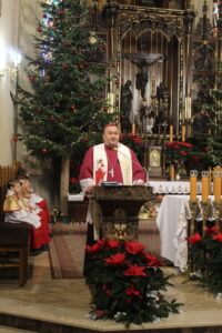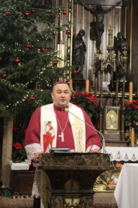 W niedzielę 12 stycznia 2025 roku, w Niedzielę Chrztu Pańskiego, w naszej parafii gościliśmy Księdza Arcybiskupa Kryspina Dubiela, Nuncjusza Apostolskiego w Angoli, Wyspach Św. Tomasza i Książęcych. Ksiądz Arcybiskup wygłosił homilię podczas Mszy Świętych przedpołudniowych oraz modlił się w intencji parafii podczas Eucharystii o godzinie 9.00.