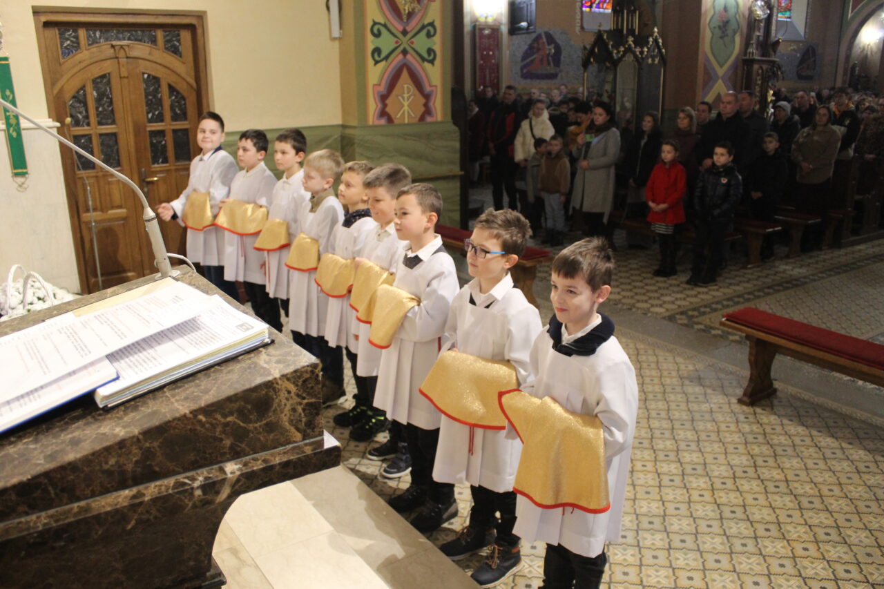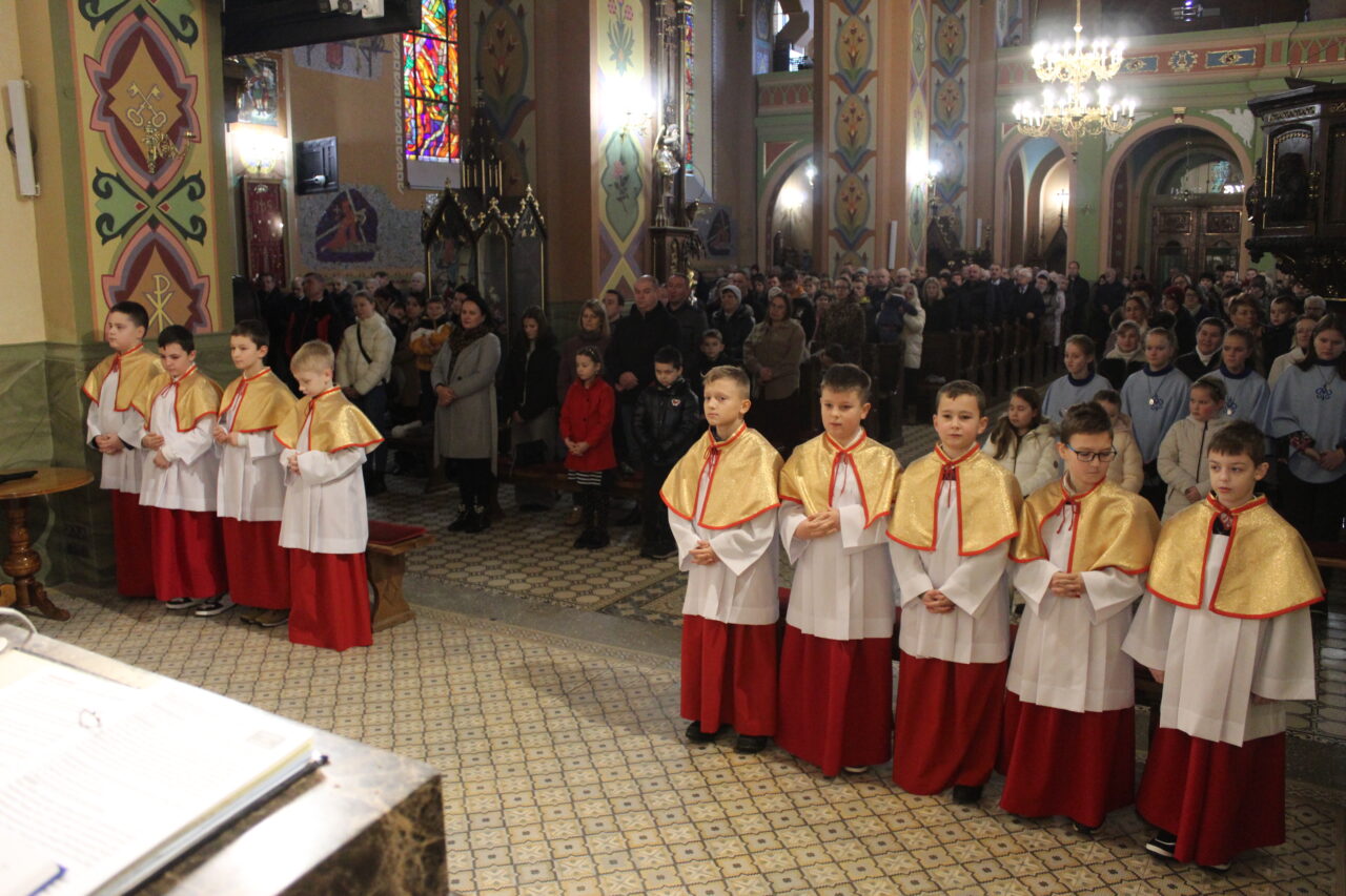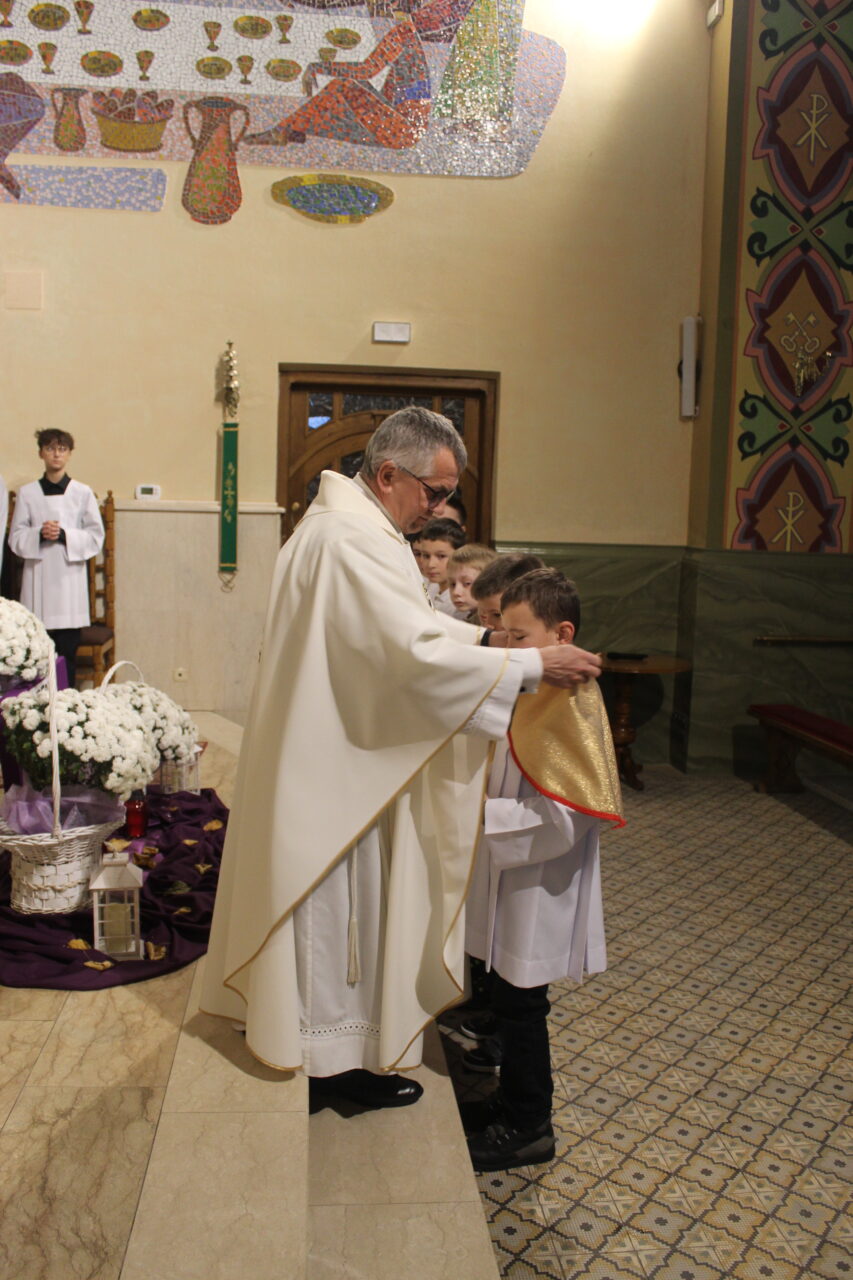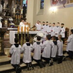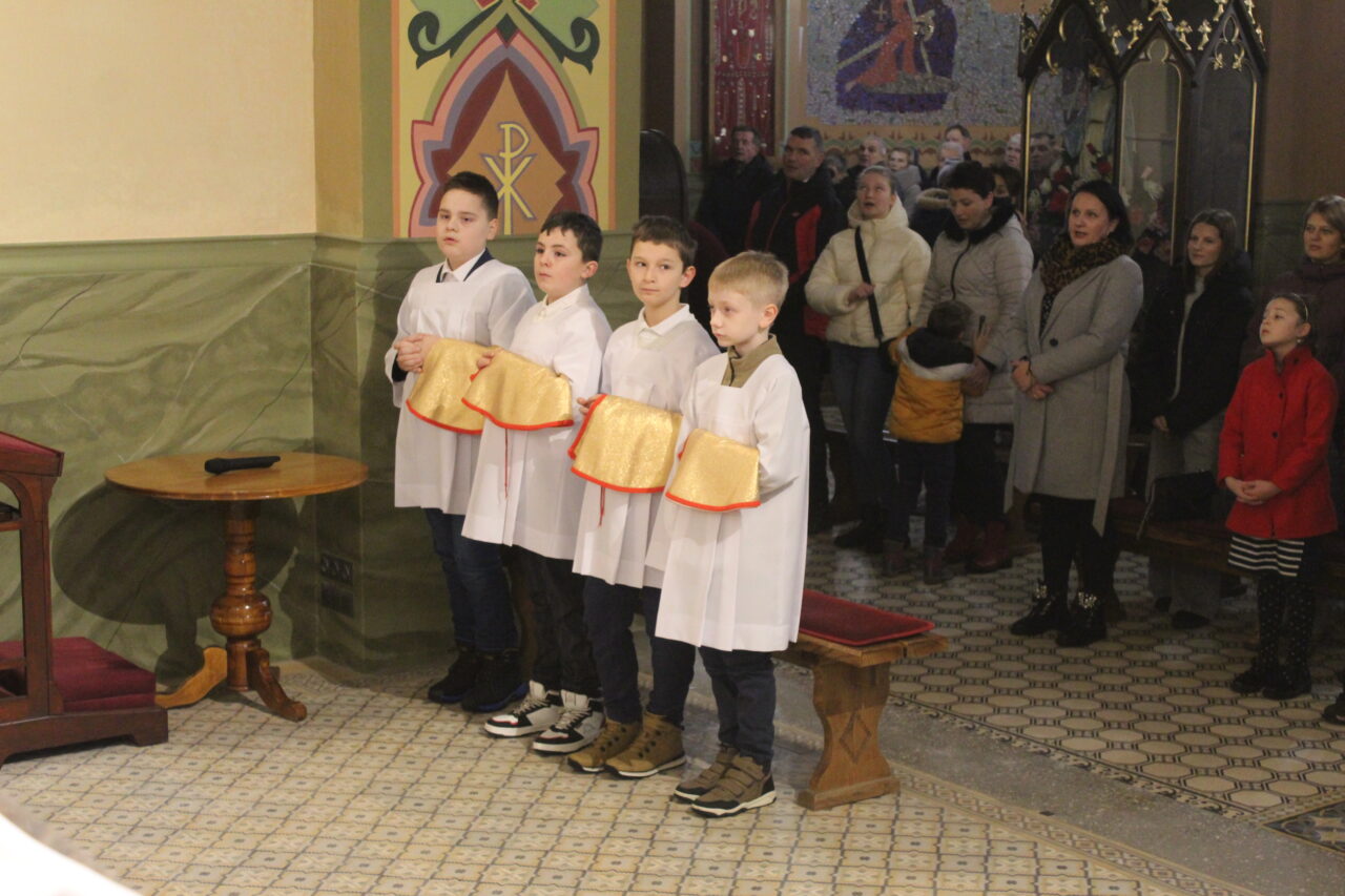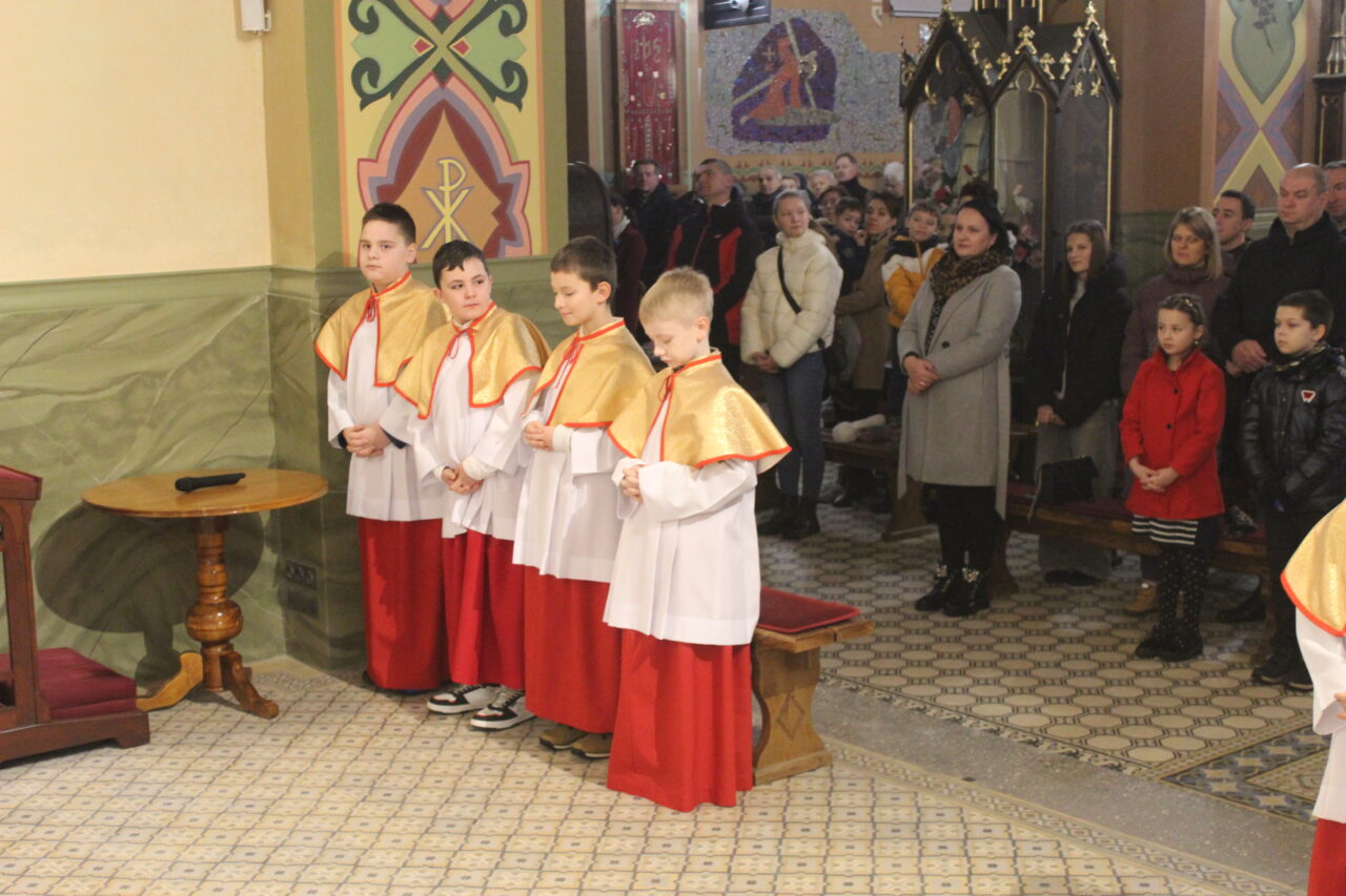 Ustanowienie nowych ministrantów miało miejsce podczas Mszy Świętej o godzinie 9.00. Po pozdrowieniu, Ksiądz Rafał, opiekun Liturgicznej Służby Ołtarza przedstawił 9 kandydatów i poprosił Księdza Proboszcza o włączenie ich do LSO. Na znak ich włączenia do Ministrantów, otrzymali pełny strój, jaki odtąd będą używać podczas pełnienia swej służby przy ołtarzu.