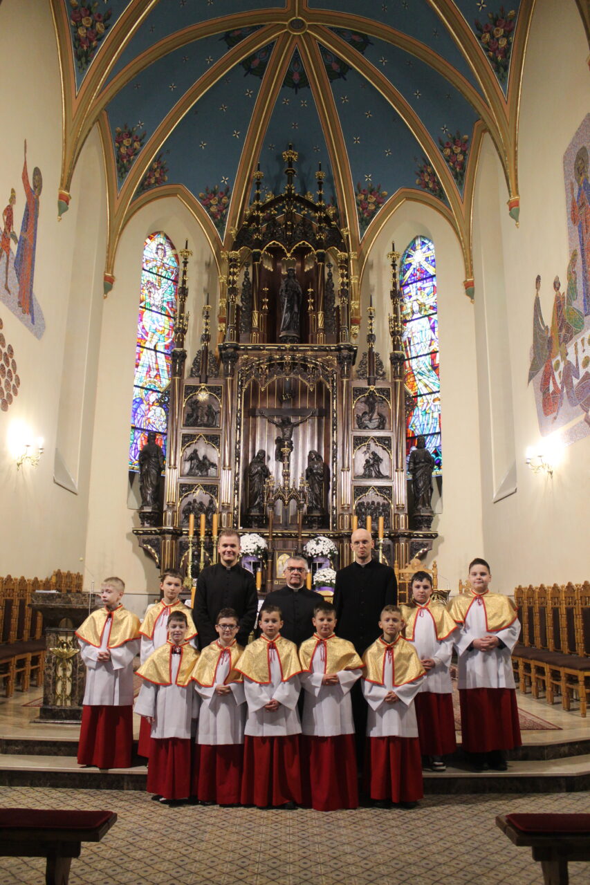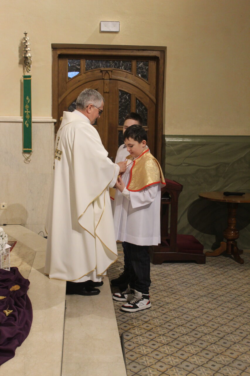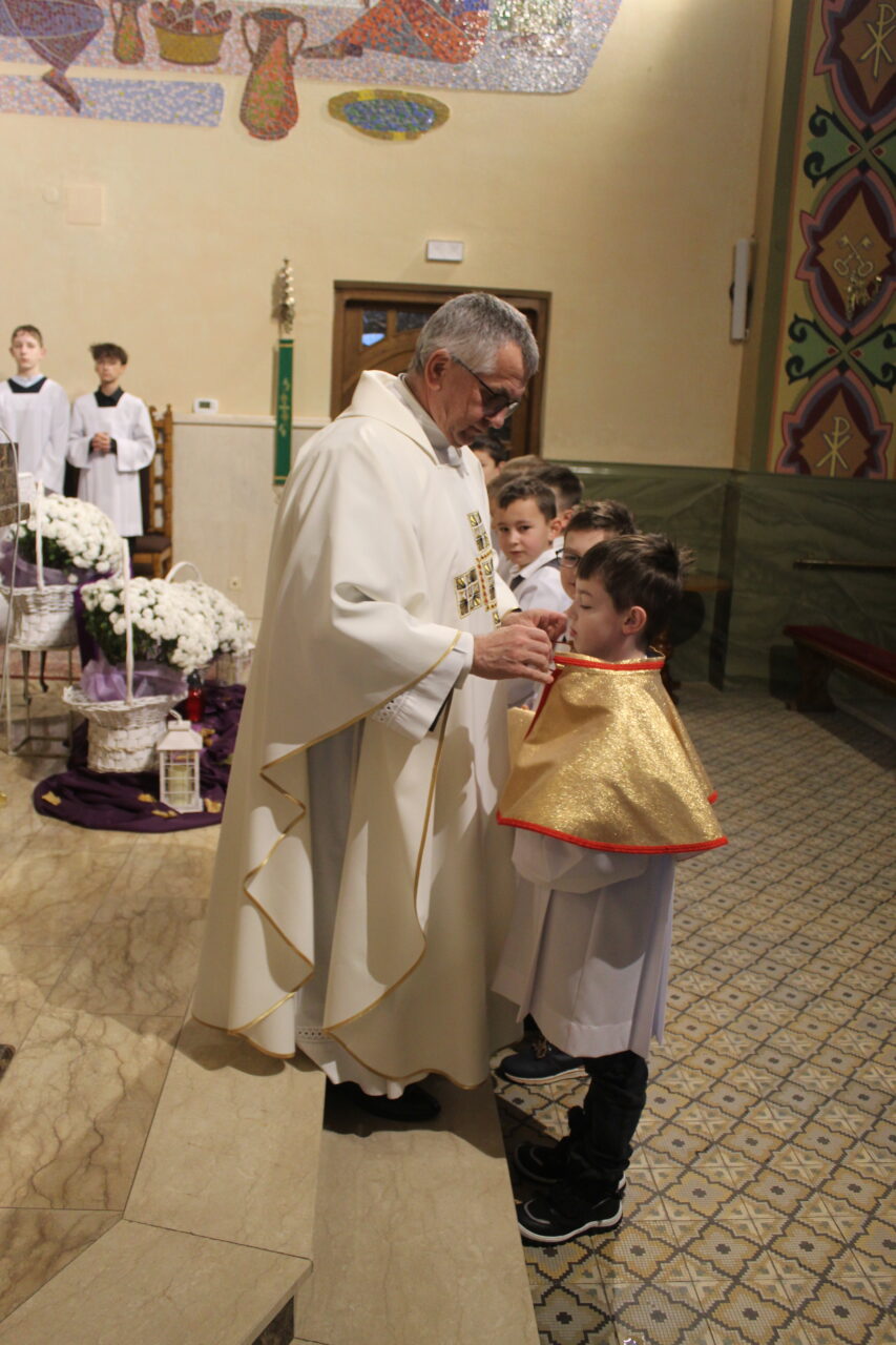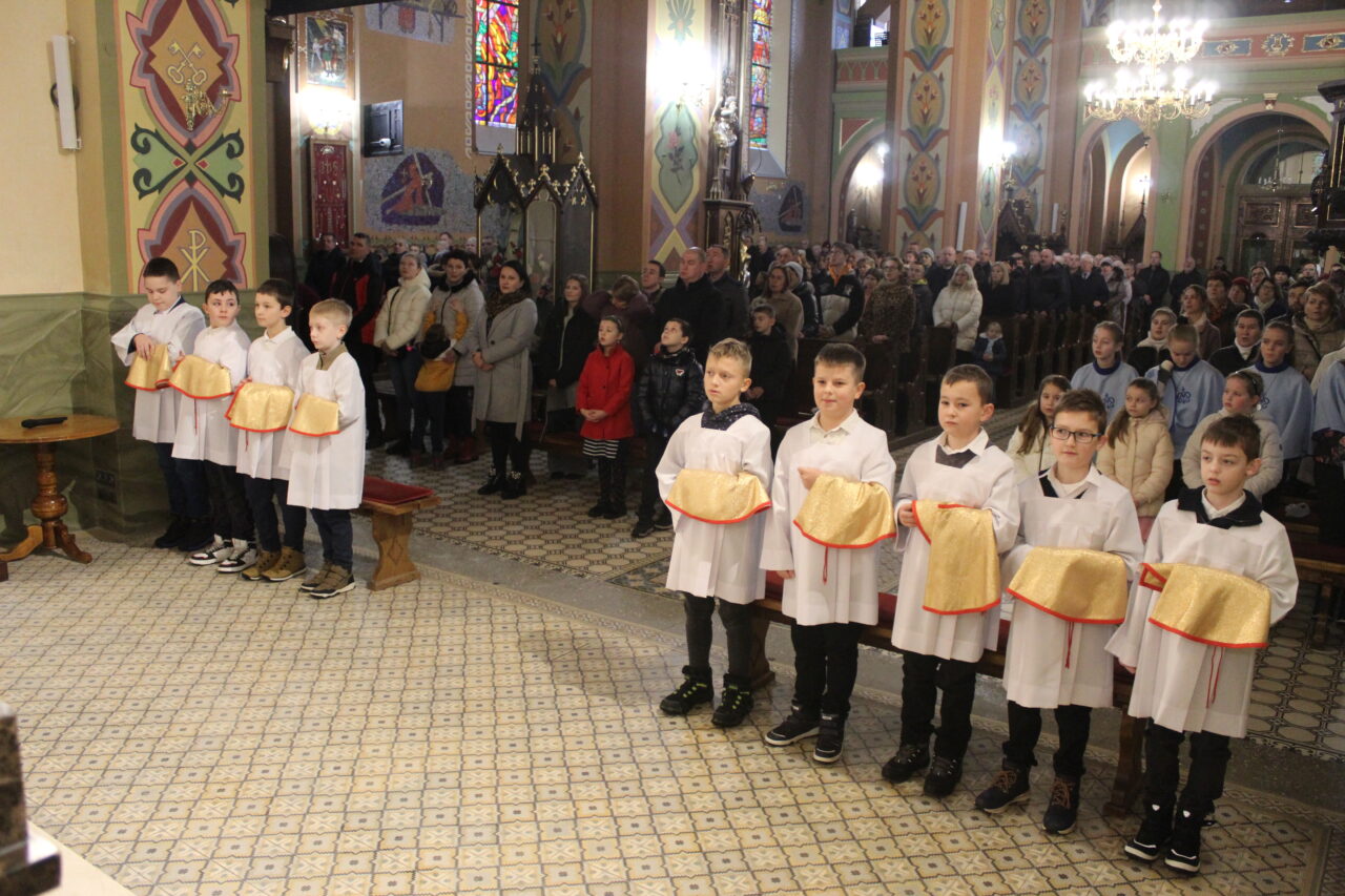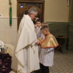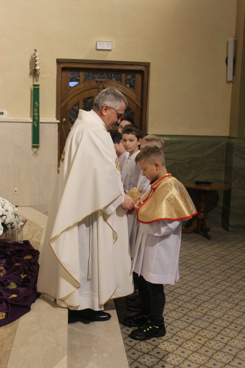 Ustanowienie nowych ministrantów miało miejsce podczas Mszy Świętej o godzinie 9.00. Po pozdrowieniu, Ksiądz Rafał, opiekun Liturgicznej Służby Ołtarza przedstawił 9 kandydatów i poprosił Księdza Proboszcza o włączenie ich do LSO. Na znak ich włączenia do Ministrantów, otrzymali pełny strój, jaki odtąd będą używać podczas pełnienia swej służby przy ołtarzu.