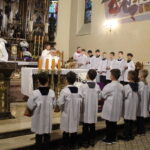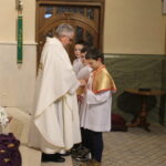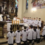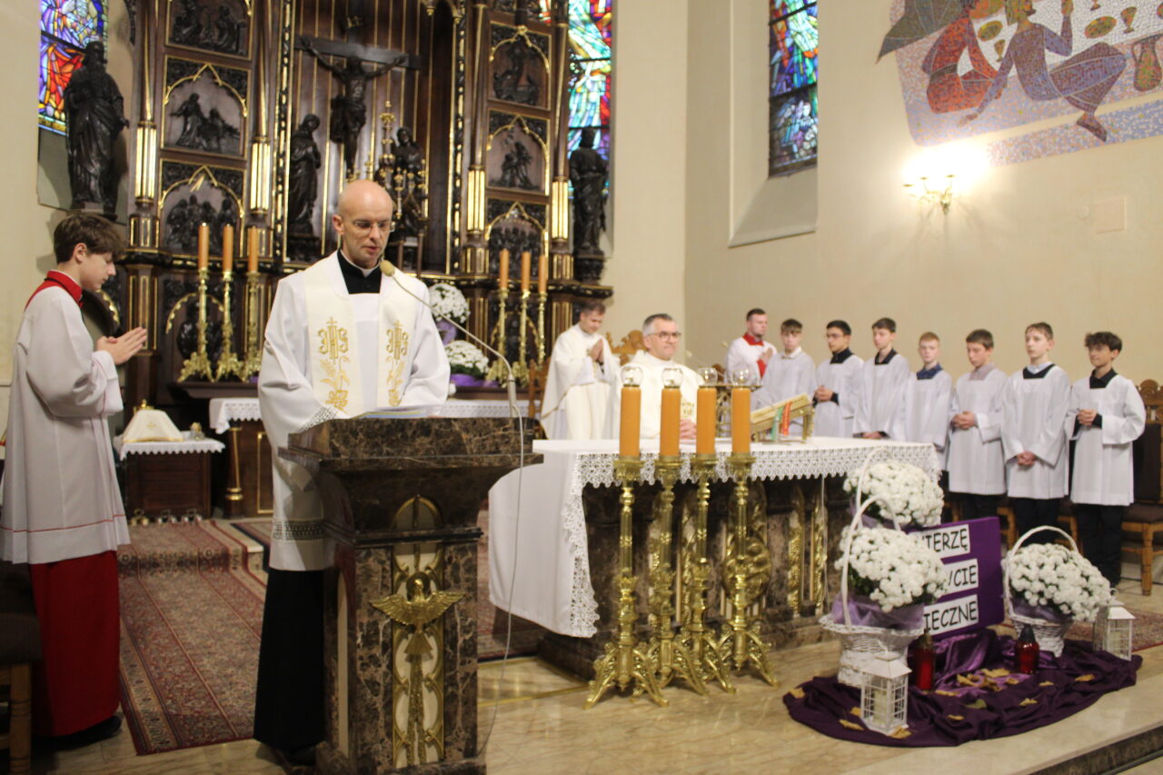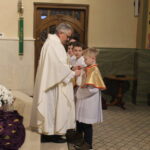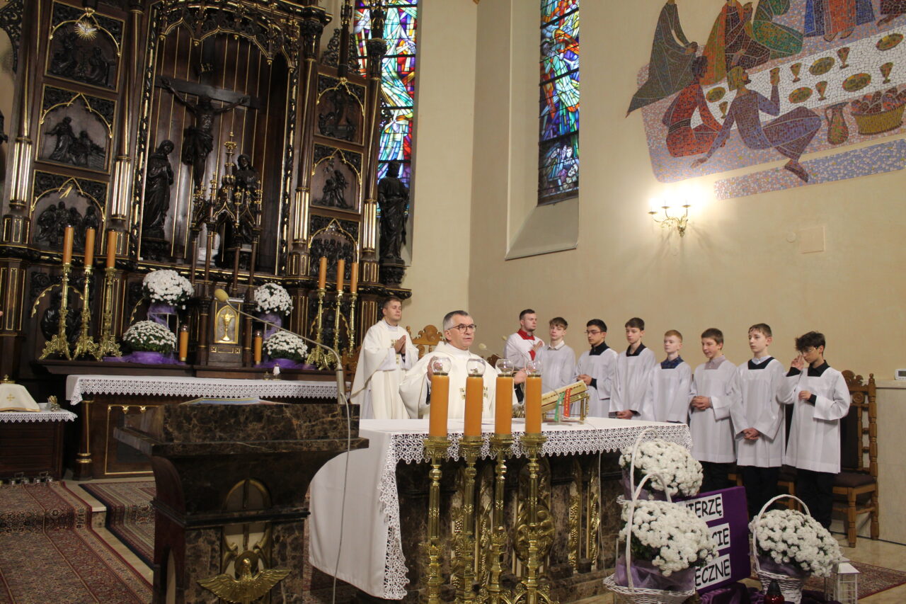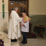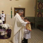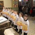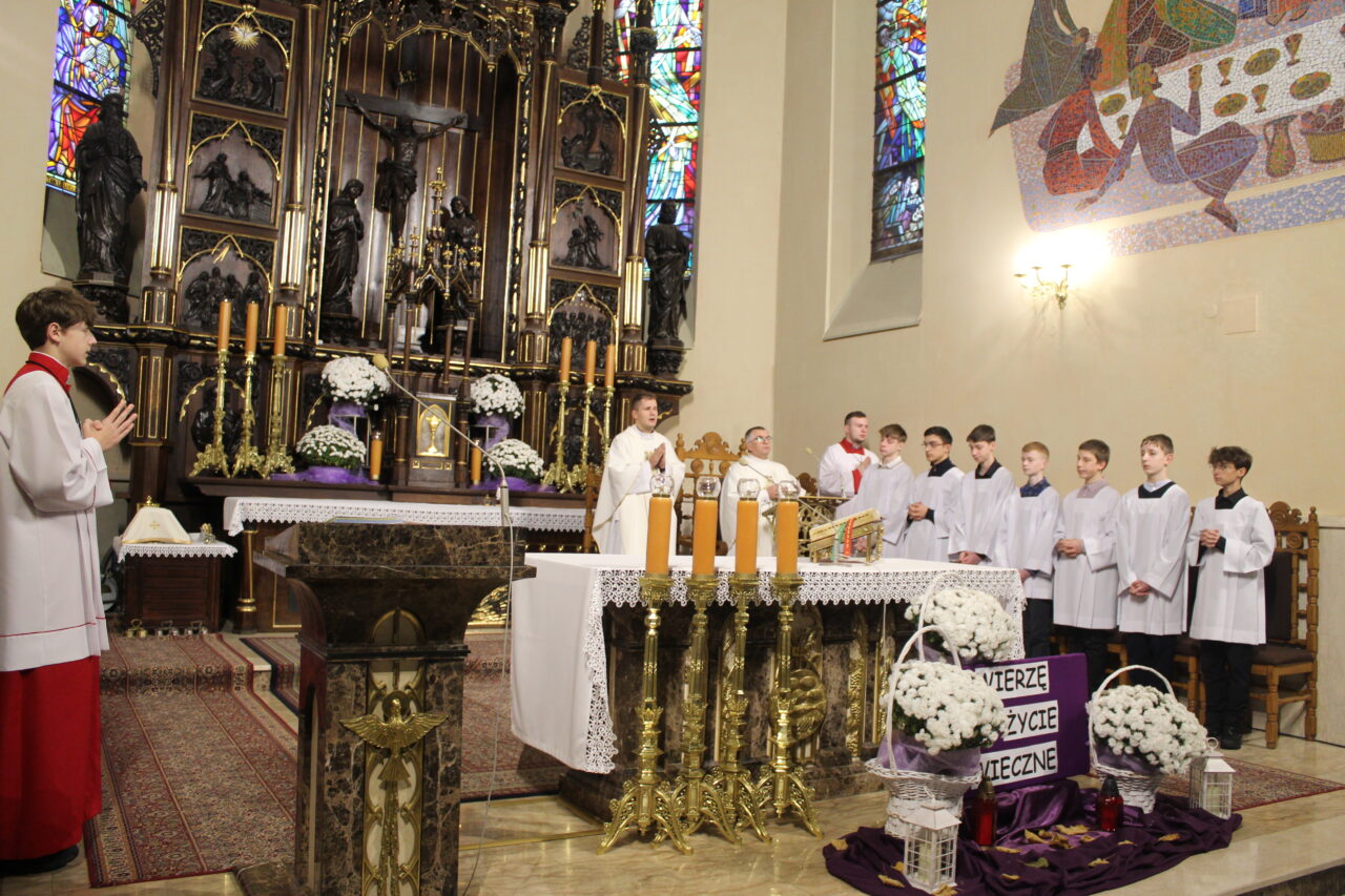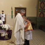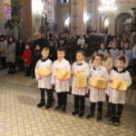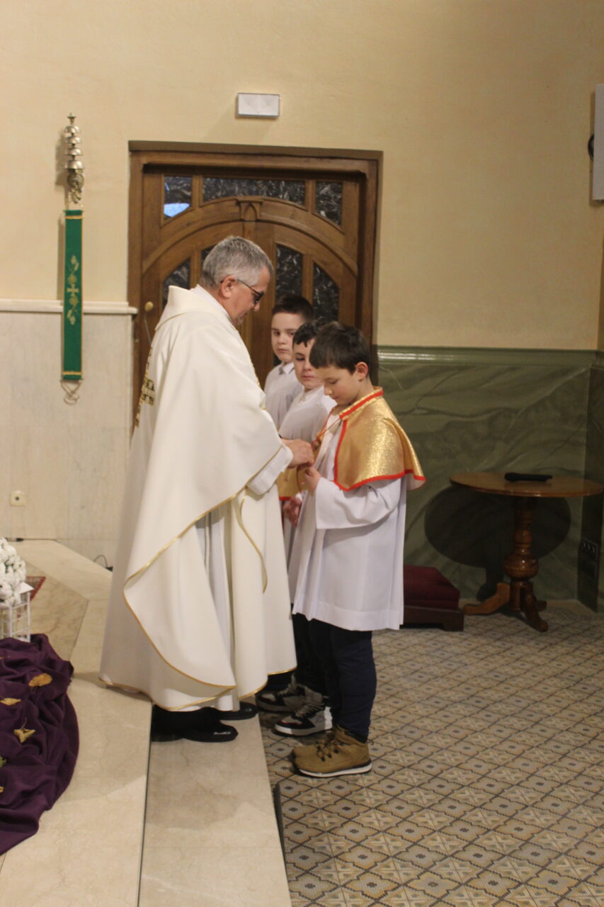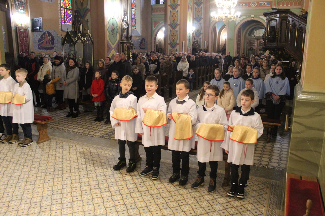 Ustanowienie nowych ministrantów miało miejsce podczas Mszy Świętej o godzinie 9.00. Po pozdrowieniu, Ksiądz Rafał, opiekun Liturgicznej Służby Ołtarza przedstawił 9 kandydatów i poprosił Księdza Proboszcza o włączenie ich do LSO. Na znak ich włączenia do Ministrantów, otrzymali pełny strój, jaki odtąd będą używać podczas pełnienia swej służby przy ołtarzu.