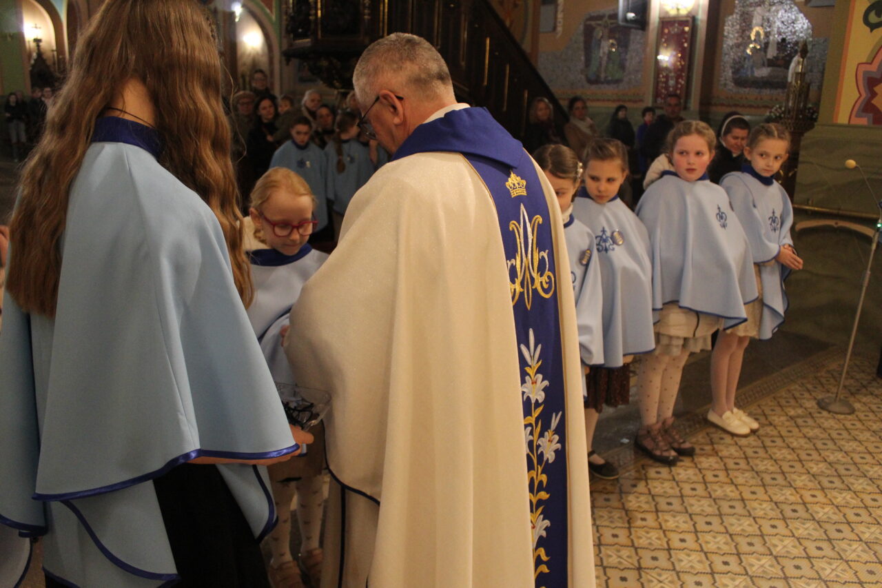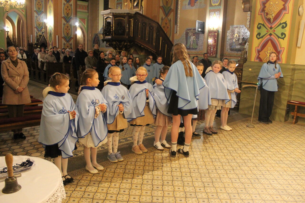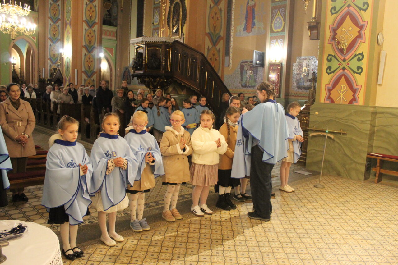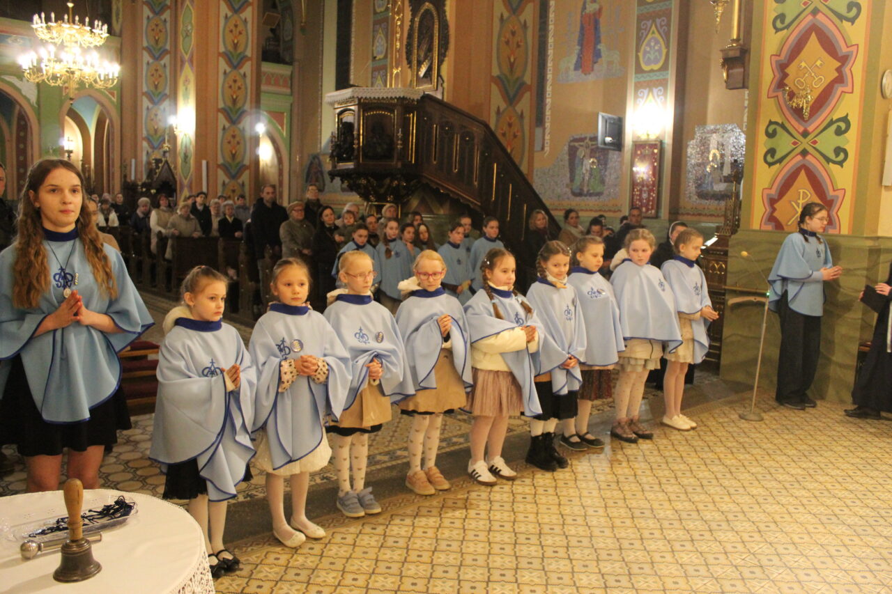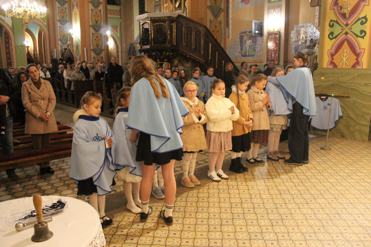 W Uroczystość Zwiastowania Pańskiego podczas wieczornej Eucharystii, dziewięć dziewczynek z naszej parafii zostało przyjętych do Parafialnej Wspólnoty Dziewczęcej Służby Maryi. O włączenie kandydatki poprosiła Księdza Proboszcza Siostra Ewelina Kozak, która, wraz z Siostrami, opiekuje się tą grupą parafialną. Ksiądz Proboszcz przypomniał kandydatkom „Pięć Zadań Dziecka Maryi”, którymi są: Posłuszeństwo, Wspólnota, Radość, Ofiara i Przyjaźń z Jezusem. Jako widzialny znak przynależności do DSM, dziewczęta otrzymały: niebieską pelerynkę z symbolem Matki Bożej, znaczek Ich grupy oraz Cudowny Medalik Maryi Niepokalanej.