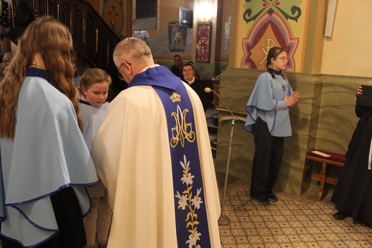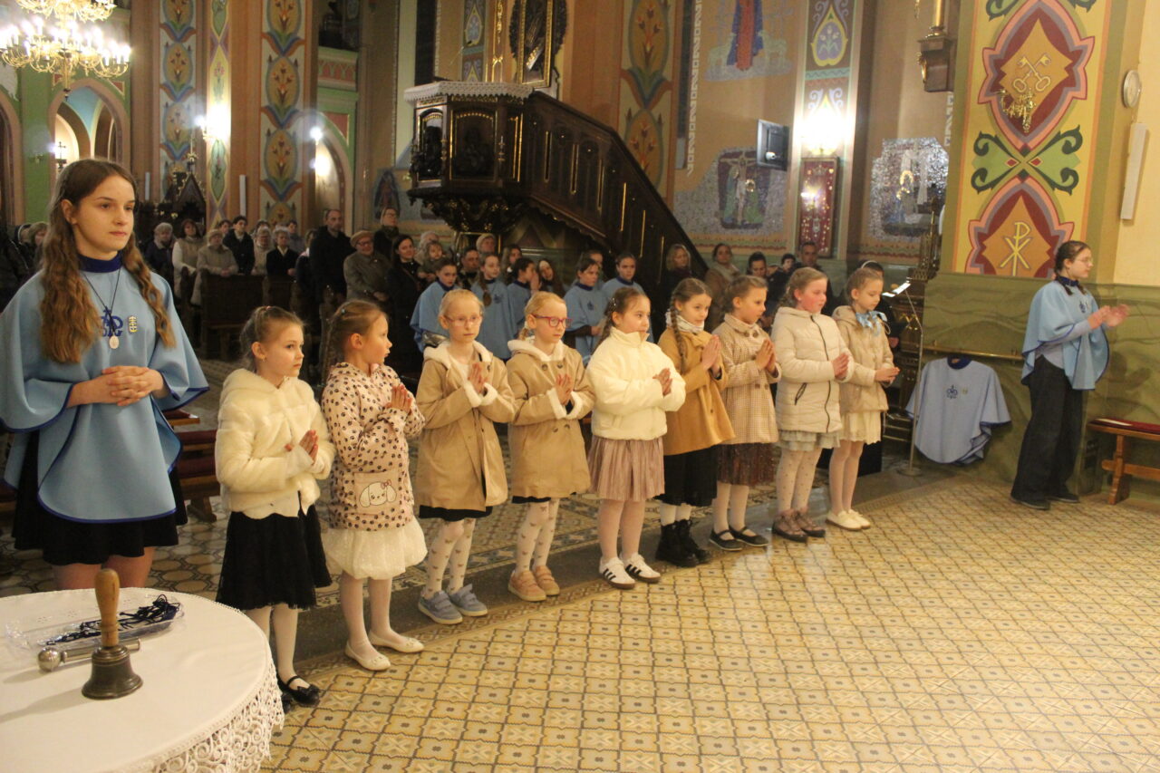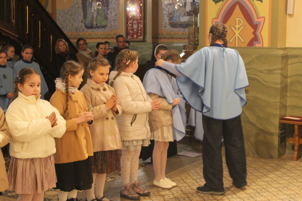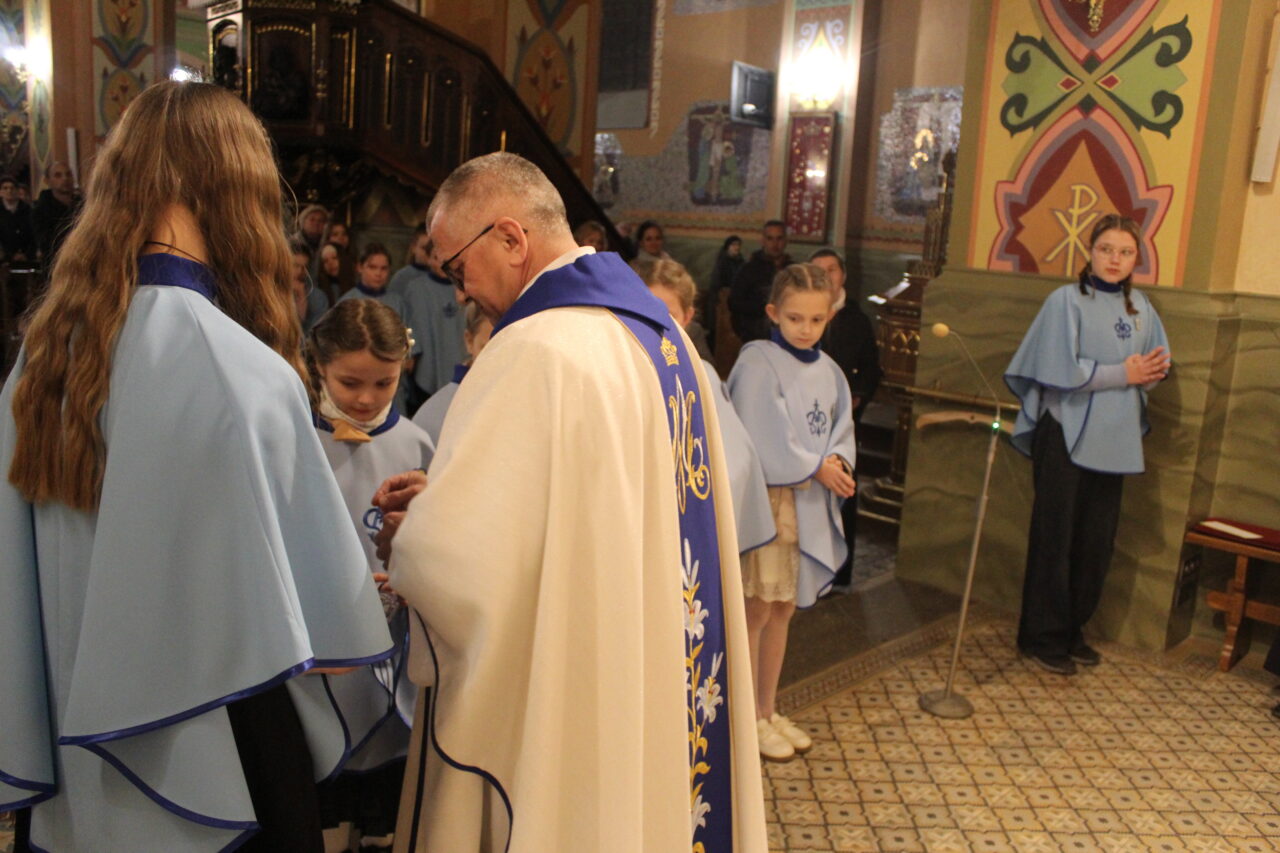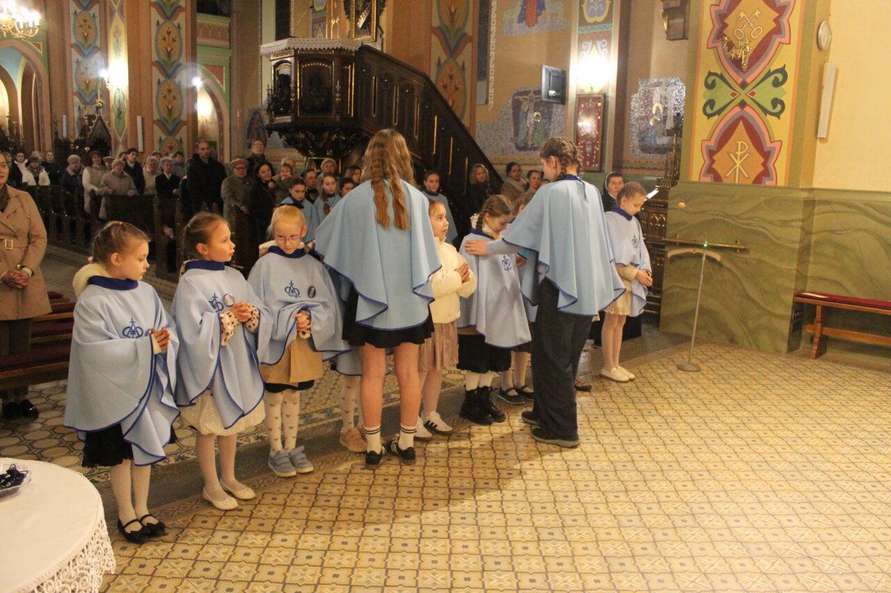 W Uroczystość Zwiastowania Pańskiego podczas wieczornej Eucharystii, dziewięć dziewczynek z naszej parafii zostało przyjętych do Parafialnej Wspólnoty Dziewczęcej Służby Maryi. O włączenie kandydatki poprosiła Księdza Proboszcza Siostra Ewelina Kozak, która, wraz z Siostrami, opiekuje się tą grupą parafialną. Ksiądz Proboszcz przypomniał kandydatkom „Pięć Zadań Dziecka Maryi”, którymi są: Posłuszeństwo, Wspólnota, Radość, Ofiara i Przyjaźń z Jezusem. Jako widzialny znak przynależności do DSM, dziewczęta otrzymały: niebieską pelerynkę z symbolem Matki Bożej, znaczek Ich grupy oraz Cudowny Medalik Maryi Niepokalanej.