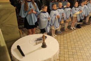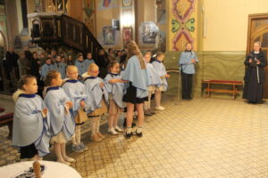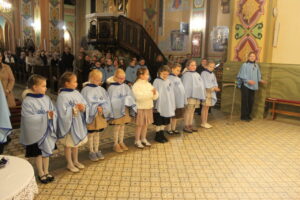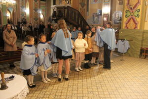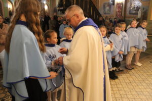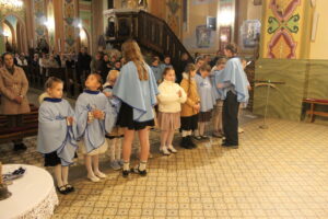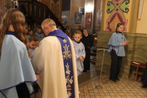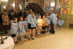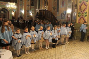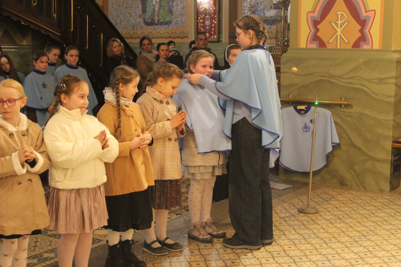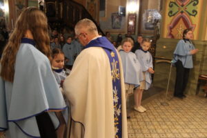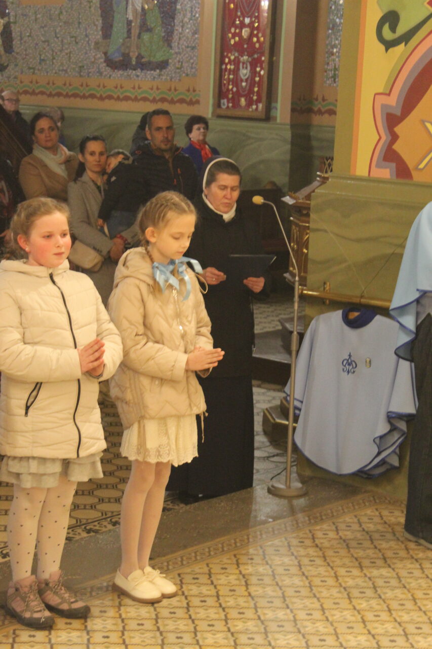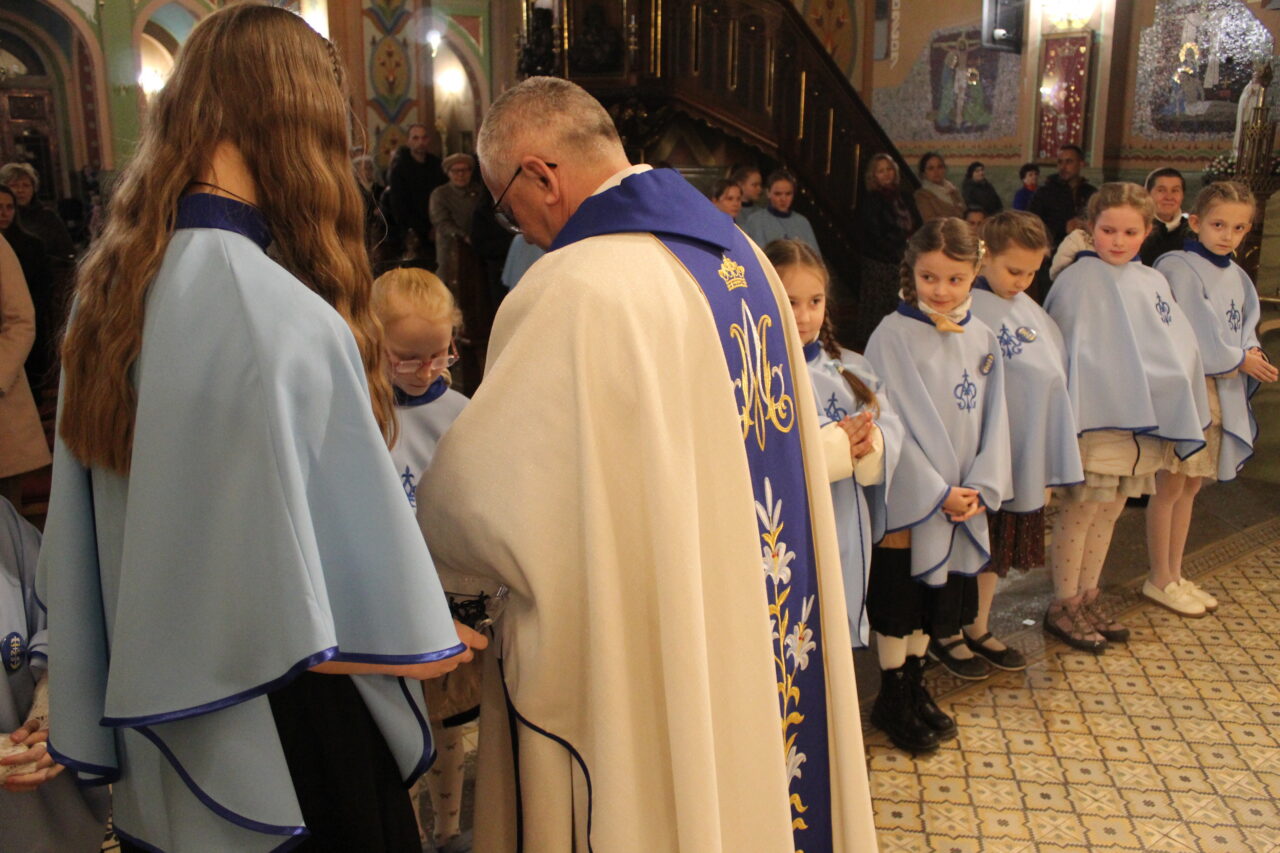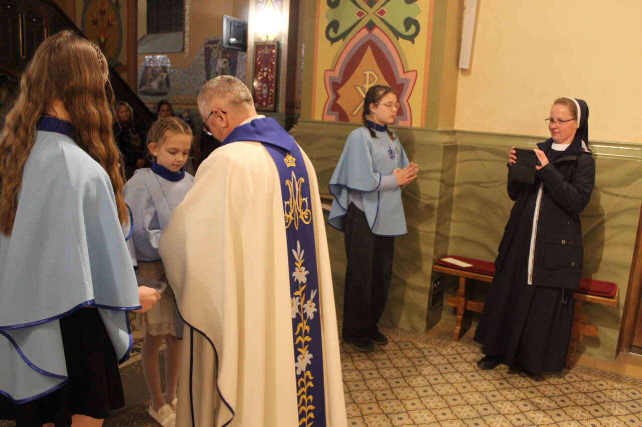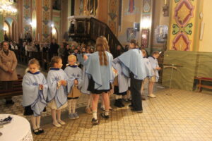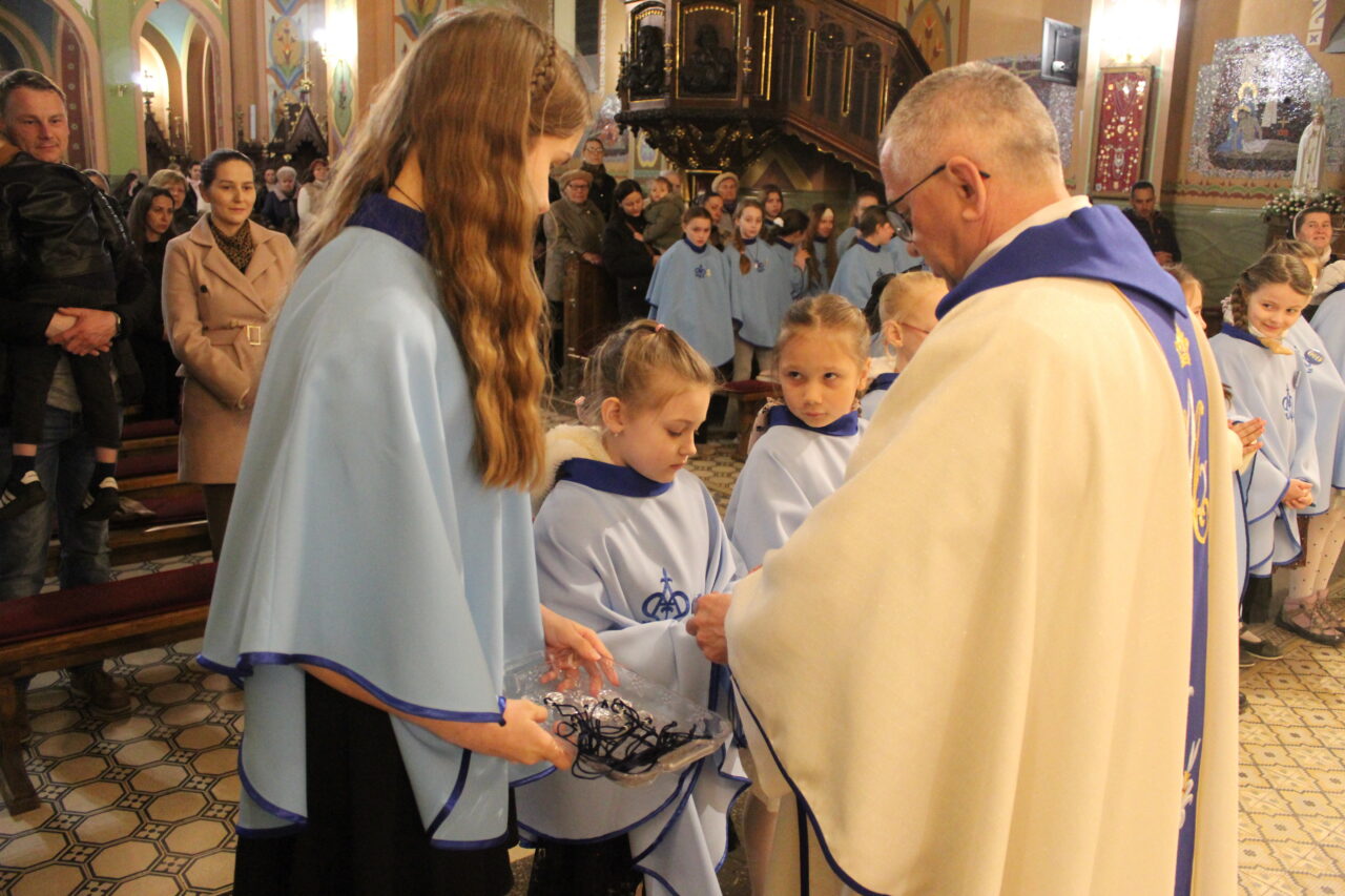 W Uroczystość Zwiastowania Pańskiego podczas wieczornej Eucharystii, dziewięć dziewczynek z naszej parafii zostało przyjętych do Parafialnej Wspólnoty Dziewczęcej Służby Maryi. O włączenie kandydatki poprosiła Księdza Proboszcza Siostra Ewelina Kozak, która, wraz z Siostrami, opiekuje się tą grupą parafialną. Ksiądz Proboszcz przypomniał kandydatkom „Pięć Zadań Dziecka Maryi”, którymi są: Posłuszeństwo, Wspólnota, Radość, Ofiara i Przyjaźń z Jezusem. Jako widzialny znak przynależności do DSM, dziewczęta otrzymały: niebieską pelerynkę z symbolem Matki Bożej, znaczek Ich grupy oraz Cudowny Medalik Maryi Niepokalanej.